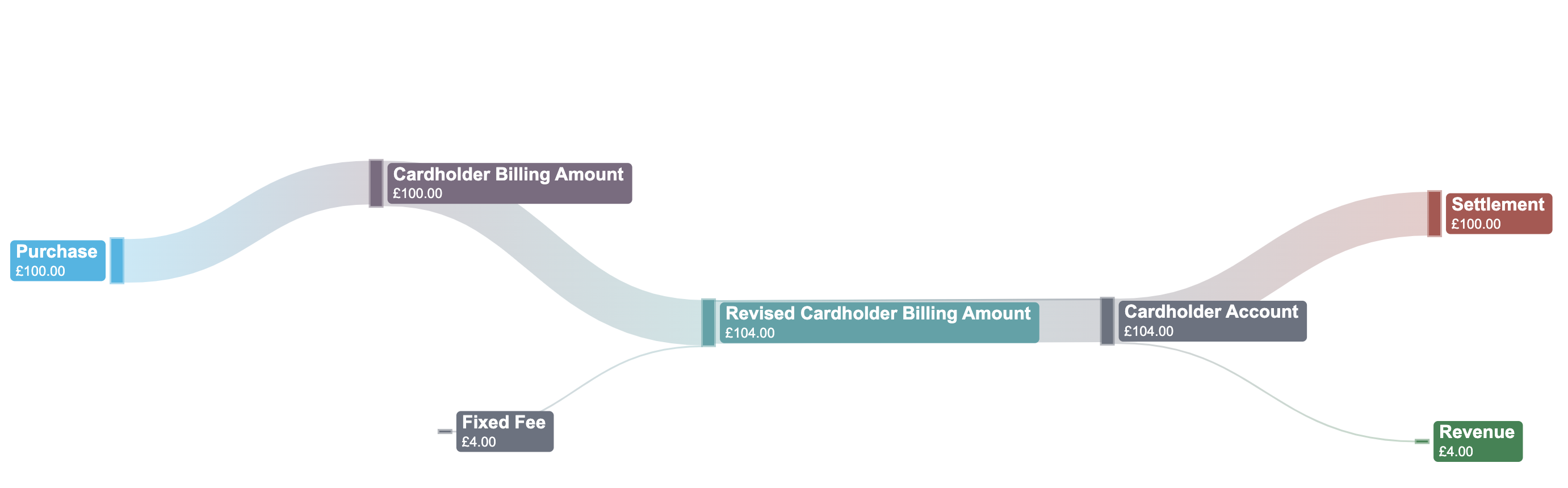 - Fixed Fee: A flat fee amount is added to the cardholder_billing_amount