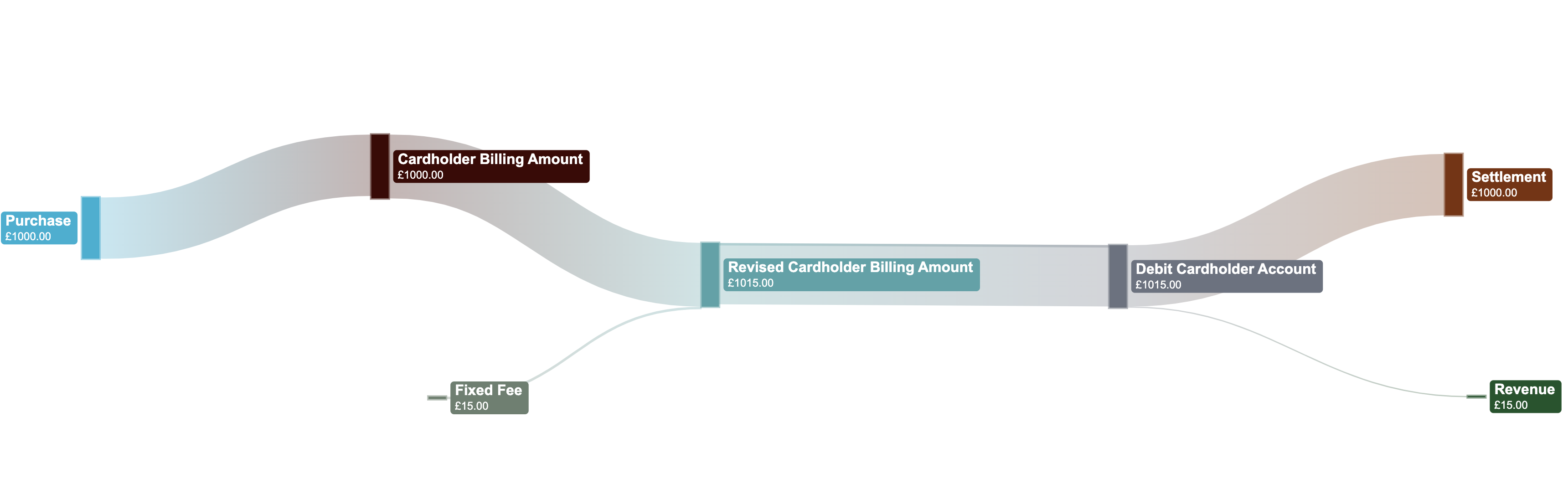 CLOWD9 will apply the fixed fee value and calculate the revised_cardholder_billing_amount for your decision (Off Ledger) or CLOWD9 (On Ledger).